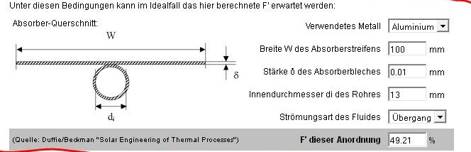 Avec un tuyau PER 13/16, au pas de 10 cm, un absorbeur Alu de 0.010 mm (la calculette ne descend pas en dessous de 0.010 mm), un régime entre deux, ni turbulent ni laminaire : le rendement est de 49 %
