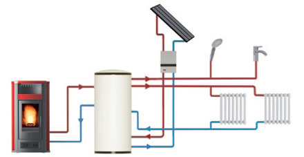 Si je comprends bien tu voudrais coupler un panneau solaire sur le circuit du poele thermo.