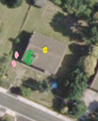 J'ai colorié en rose les endroits où je pense pouvoir mettre un capteur pour systeme thermo siphon, en vert le garage où je peux facilement mettre un ballon, en jaune l'emplacement de la salle de bain.