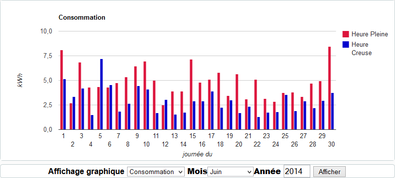 On peut constater une baisse de la consommation globale ( HP + HC ) de l'ordre de 30% en Juin .