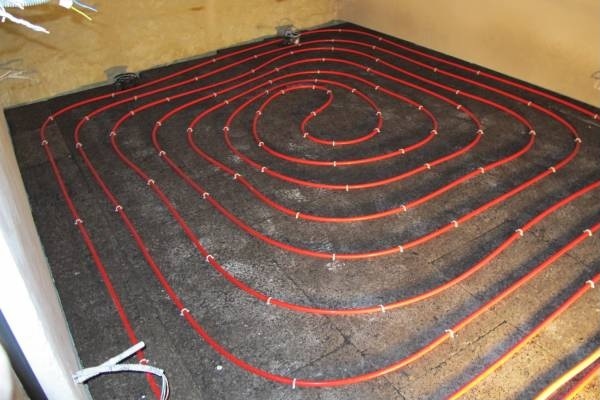 Mon sol étant de la roche calcaire, j'ai d'abord installé l'élec et la plomberie puis fait un ravoirage pour accueillir les panneaux de liège. Ensuite installation des tuyaux de plancher chauffant.