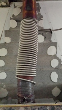 L'échangeur est constitué de près de 22 m d'annelé DN 16 et environ 20 mètres de liaisons dans le sous-sol vers le ballon.