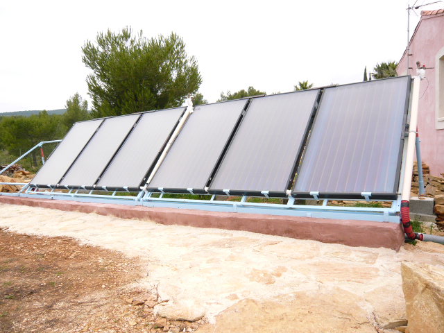 20m² de panneaux autoconstruits qui sont posés a la place des ardoises sur le toit d une dependance orientee sud 10° ouest, le toit d origine etait a 45°... avec mes beaufs on a amené la pente a 64°. pour l instant je ne pourrais pas mettre de photos, mais je pense que d ici fevrier 2010 j essairai de rediger un ptit cr avec photos...