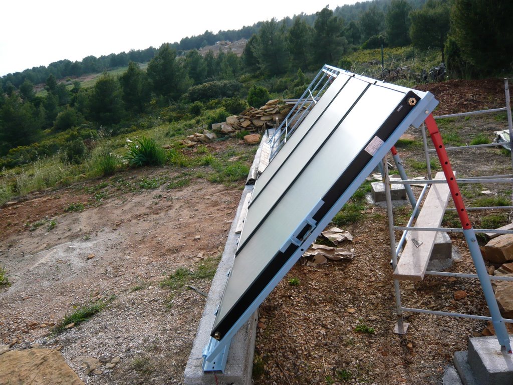 20m² de panneaux autoconstruits qui sont posés a la place des ardoises sur le toit d une dependance orientee sud 10° ouest, le toit d origine etait a 45°... avec mes beaufs on a amené la pente a 64°. pour l instant je ne pourrais pas mettre de photos, mais je pense que d ici fevrier 2010 j essairai de rediger un ptit cr avec photos...