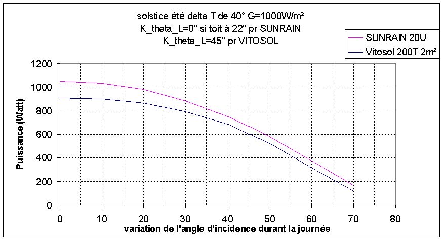J'ai comparé la puissance fournit par un capteur vitosol200-T 2m² (1500€) et un capteur SUNRAIN U-PIPE SV20 (500€).