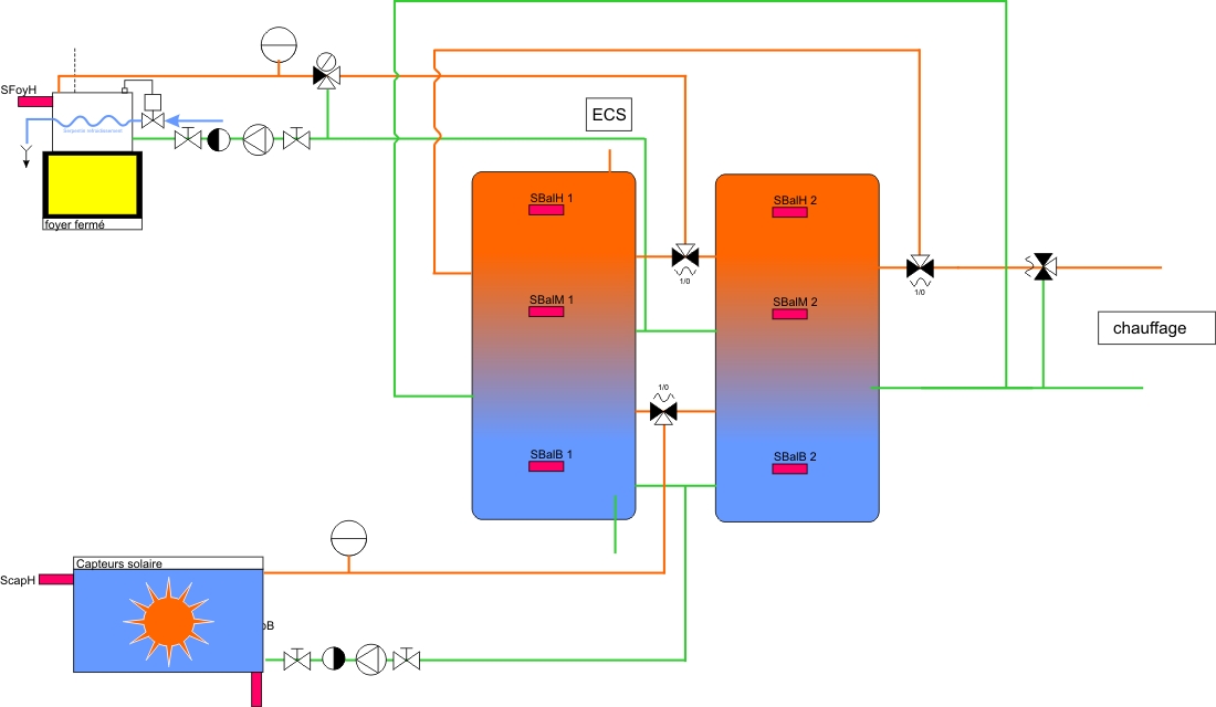 Pour ce qui est du raccordement des deux ballons, j'avais fais un schéma (voir ci-joint) qui va dans le sens d'ice54 pour une gestion par la régulation et "optimisation" mais je ne suis pas vraiment sur que la complexités d'installation et de régulation en vaille la peine par rapport au gain d'energie ?