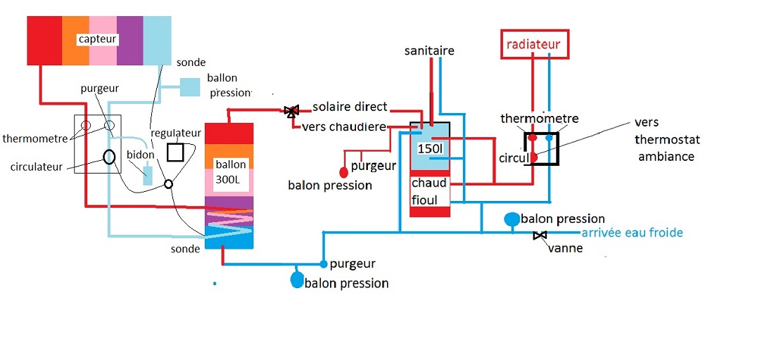 [referp=78677;quote="nicolas34"]le schéma devrait ressembler à ceci, pour la partie ecs , avec, si j'ai bien compris, un jeux de vannes permettant de passer par le ballon chaudière (préchauffage) ou en direct.[/quote]