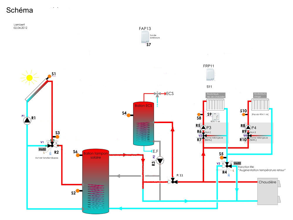 C'est le fonctionnement actuel qui sera testé cet hiver sauf que R4 est bloqué vers la chaudière puisque pas d'installation solaire.