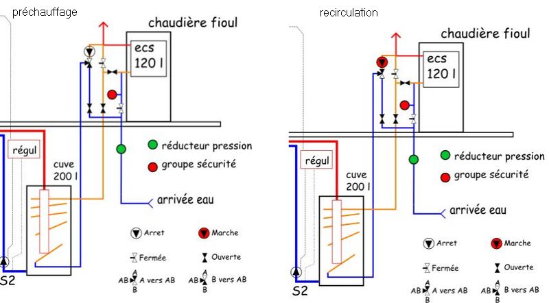 dans ce montage il n'y a pas d'apport d'eau froide en recirculation, juste un circuit fermé où l'eau tourne entre solaire et chaudière: donc si on ouvre le circuit (puisage)