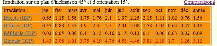 - il faut calculer la moyenne d'ensoleillement en prenant par exemple par exemple l'historique dans meteociel