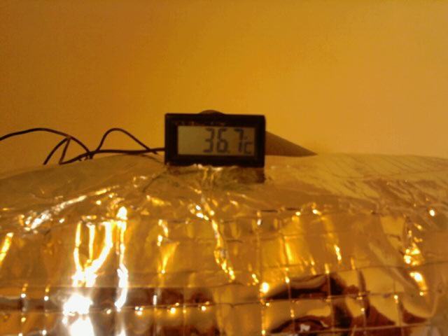 La T° oscille entre 36 et 37° entre isolant et cumulus, alors que la T° sur la face externe de l'isolant est d'environ 16°. La buanderie dans laquelle se trouve le cumulus est une pièce tampon située au nord, il y fait en ce moment 15°.
