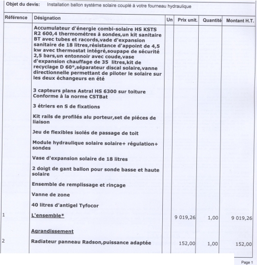 Pour la partie solaire, nous avons pour le moment qu'un devis à 13900 euros en Hs Therm...