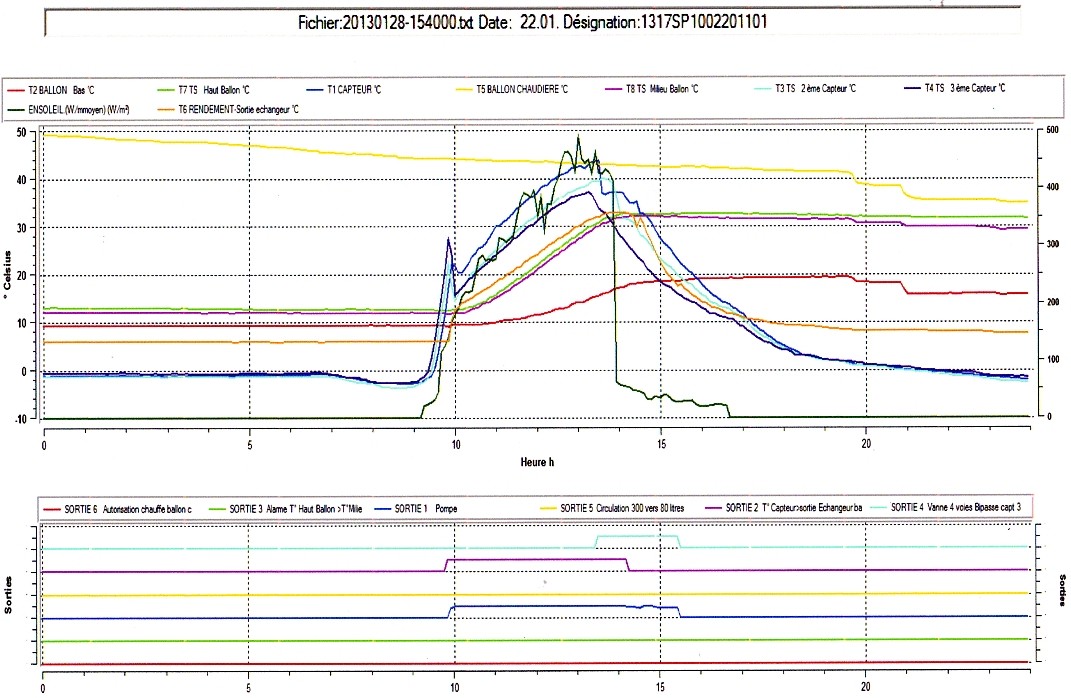 Suite à ce phénomène de bouchon et a des alternances rapide d'ensoleillement, les capteurs n'ont pas amorcé avec la vitesse mini du circulateur.
