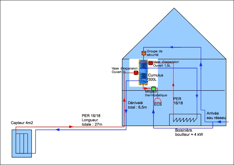 Je tiens vraiment à ce que ça fonctionne sans électricité alors je vais réfléchir à une solution pour avoir le cumulus au 1er étage. Dès que je suis décidé je mets à jour le schéma.