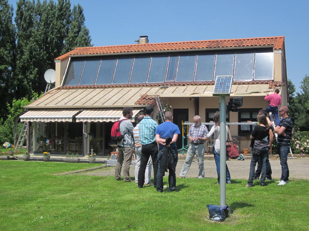 Vu Guy ce matin. Les gars du Greta ont des projets solaires. Guy a fait une super maquette pour expliquer le solaire à air (solaire aérothermique