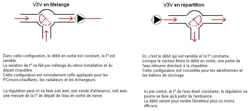 lorsque la temp interne est inférieure à la consigne, la V3V commence à s'ouvrir et stabilise la temp de départ en fonction de la temp ext et de la courbe d'eau.