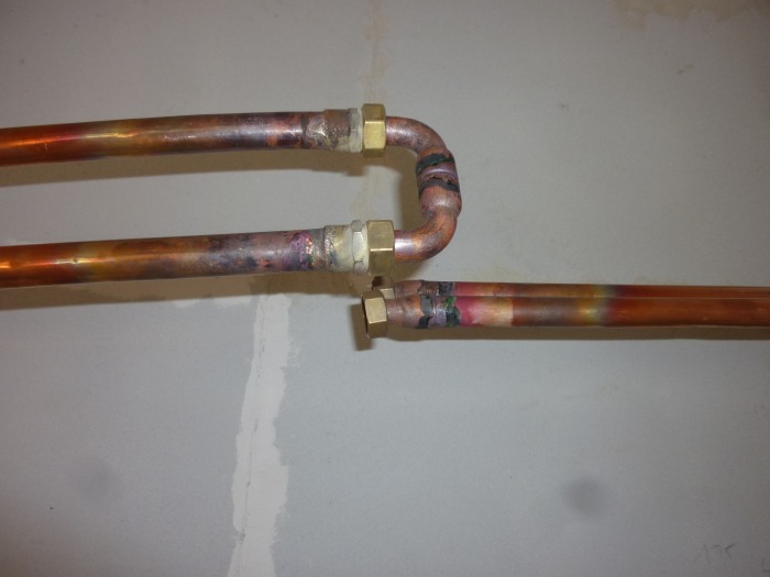 Sachant que mes capteurs ne sont pas encore connecté à ce circuit, j'ai rebouclé les 2 tubes de cuivres (aller - retour vers capteur)