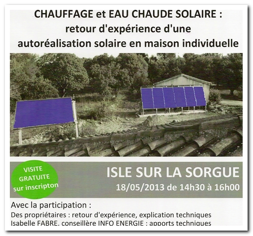 Les intervenants seront: un installateur local de solaire thermique et naturellement APPER.