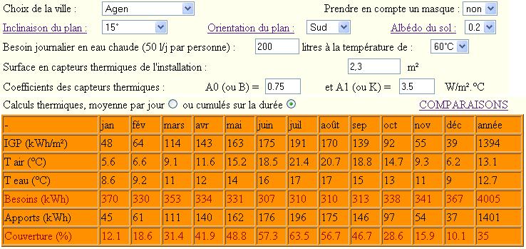 Ok sur le coté d'utiliser toutes les subtilités de calsol, mais dans le cas de la surchauffe je verrais plutôt un petit besoin mais c'est vrai que le ballon peut aussi dépasser largement les 60° donnés au logiciel. Dans le cas de Bob, même en "jouant" avec l'outil avec des très faibles besoins et des hautes T°, les excédents sont faibles.