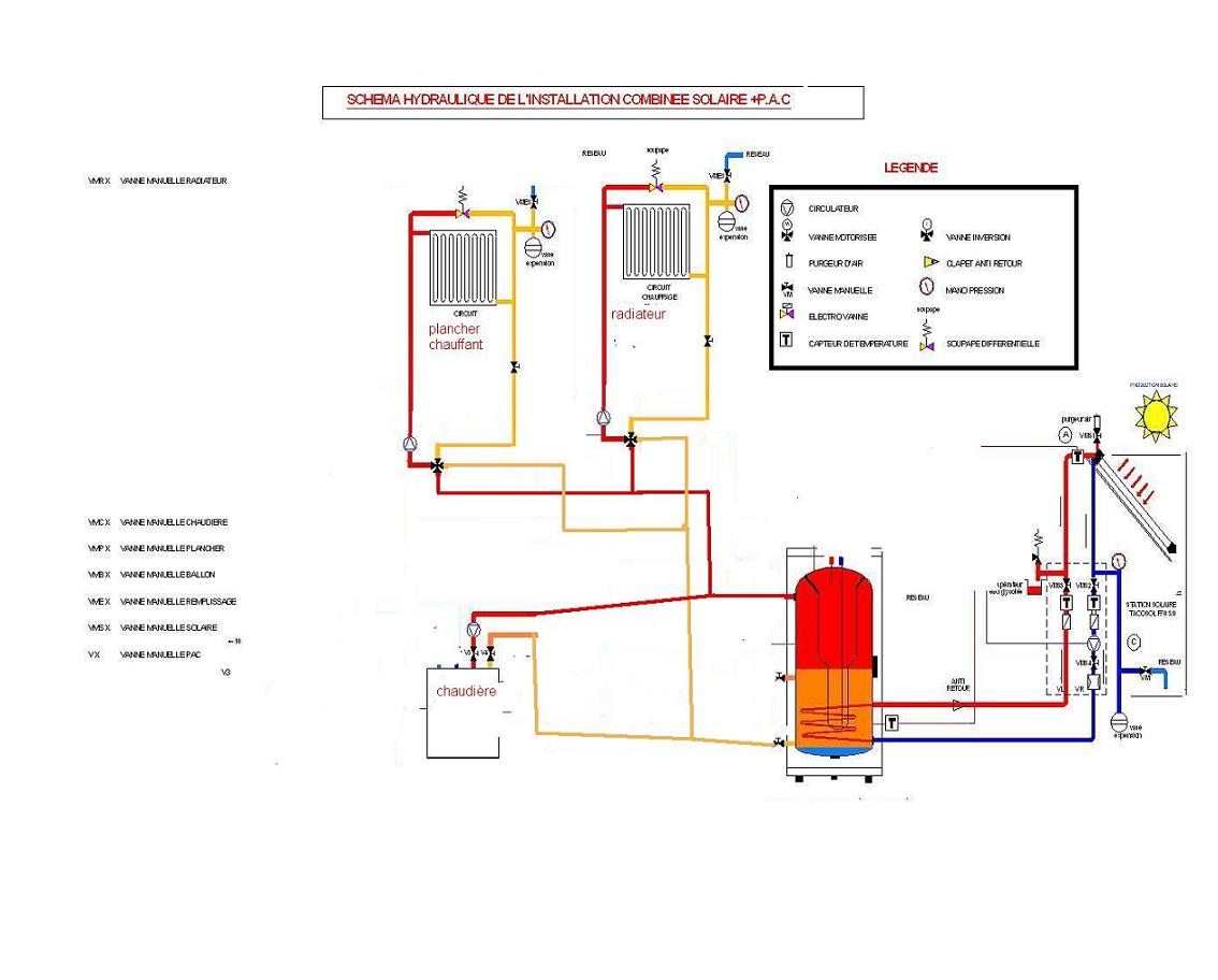 les vannes 3V manuelles (V Rad 1 et V Pc 1) sont la pour passer du circuit d'origine au circuit ballon solaire quand mon installation sera prète