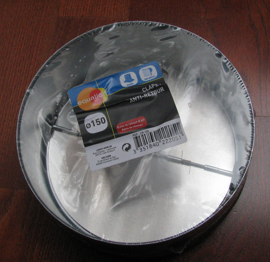 comme viens de le préciser AD44 , on trouve facilement ces clapets anti-retour en GSB ( BR...Dé.., Wel..., LEr...Mer..) , dans des diamètres variés . J'ai trouvé facilement du diametre 125 et 150 mmm, tout acier . Juste veiller à mettre l'axe vertical , car le petit ressort de rappel n'a pas la force de soulever les 1/2 volets dans une autre position !Pour de l'air froid , il existe des modèles en PVC je crois . Cordialement Guy
