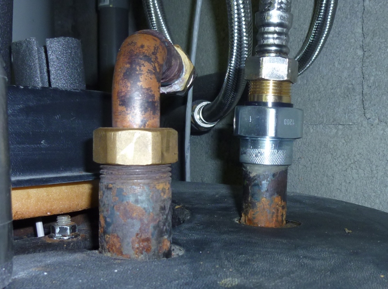 "Il suffit de mettre des raccords dielectriques" me direz-vous... Sauf que j'ai 2 raccords en 2" (oui oui, 2 pouces, du 50/60), sur lesquels je refuse de mettre des raccords dielectriques à 200 € pièce ! Et quid des bouchons également en laiton ?