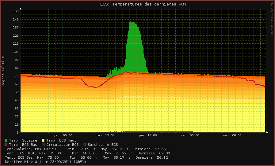 La semaine dernière je m'inquiétais d'une limite de surchauffe, avec 35-38 l'aprésmidi, et 14-15 la nuit....(800 l à 80°..)