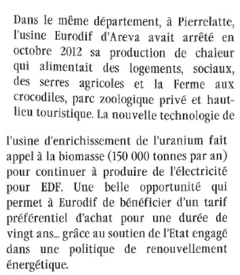 * Eurodif n'était pas "producteur de chaleur". c'était plutôt de la récupération de chaleur perdue par notre procédé.