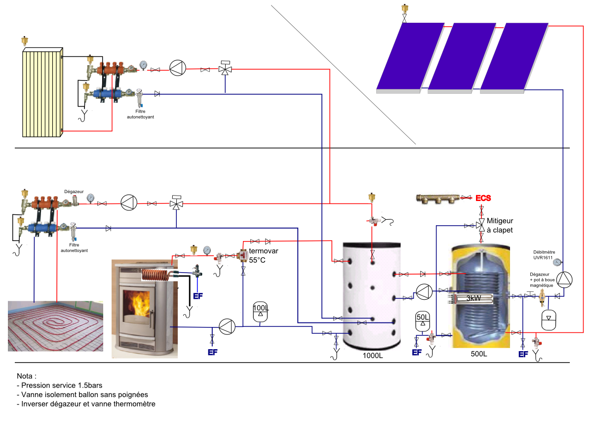 J'ai un peu changé la partie solaire et je vous propose un schéma en drain back.