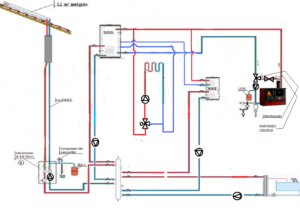 Quand on vois un schema solaire avec un ballon de 500l , la logique voudrait qu il serve d hydrau accumulateur solaire , ce n est pas ton choix