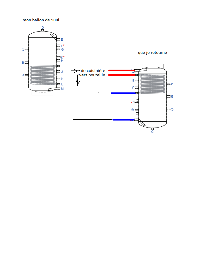 ce qu'il faut savoir, cette maison est relativement bien isolée, en général ( sauf par grand froid sans soleil), lorsque cette cuisinière sera en fonctionnement, elle devrait suffire pour maintenir une température correcte dans la maison. D'où l'idée de ne chauffer qu'une réserve, pendant l'utilisation de cette cuisinière, à plein régime pendant 4-5-6 heures en fin de journée, si le soleil était absent. et le lendemain matin, si le soleil ne s'est pas plus pointé, j'envoie ces 500 litres dans les murs.