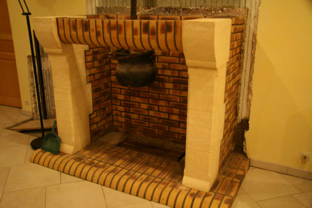 Dans la sole de la cheminée, il y a un trou de 25 par 70 cm environ sur lequel repose une plaque en fonte de 18 mm percée en son centre d'une cinquantaine de trous de 10mm de diamètre.
