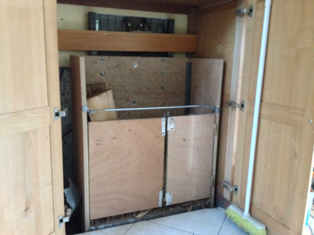 Toujours au sous sol et dans cette gaine, il y a un grand bac à roulettes, lui aussi fabriqué en tôles galvanisées.