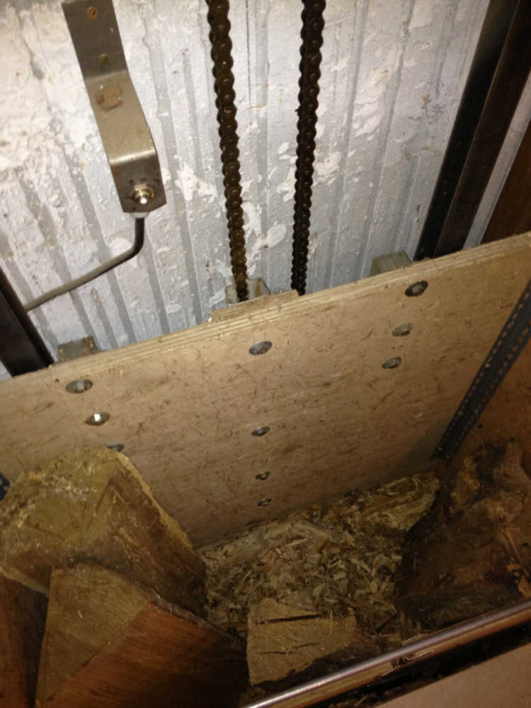 un trou dans le plancher pour faire avec un monte charge l'alimentation en buche sous le foyer,