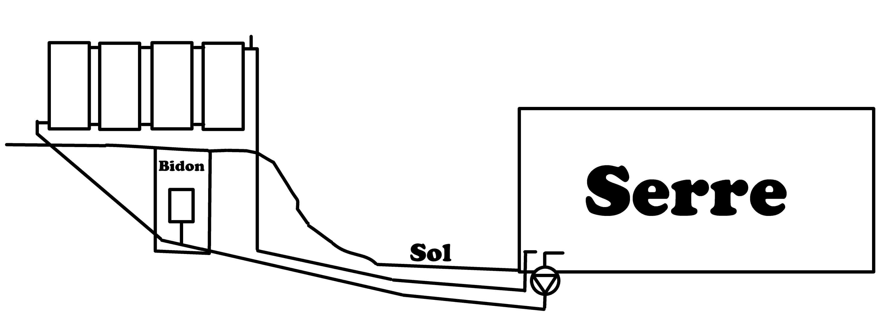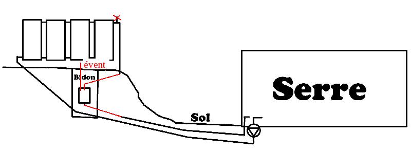 Dans le cas de la serre je penche pour la 2eme solution; comment isoler plusieur centaines de litres, voire milliers, en milieu agricole? Un réseau en profondeur permet de travaliler la terre sans compliquation ( bienque de la tendance actuelle est de ne pas "travailler" la terre pour préserer le travail des bacteries selon la profondeur).
