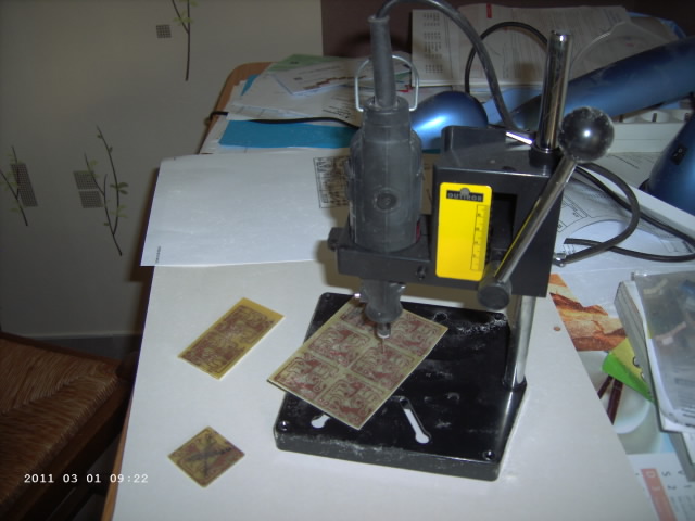 La mini perçeuse s'adapte bien mais je n'ai pas encore percé les circuits car j'attends les mèches caubures commandées chez "Gotronic"