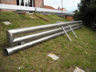 Donc J'ai demarré la construction ( avec les moyens du bord ) d' un Four solaire avec des Tubes Inox ( récupérartion ) en Diam 150 mm de longueur 6m ( 3 tubes ) soit 18 m , qui seront placés en horizontal plein sud sous la terrasse .