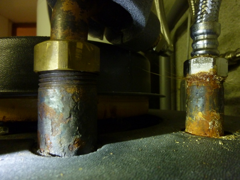 Voir la photo, à gauche c'est l'arrivé avec un raccord laiton sur acier => rien, pas de corrosion.