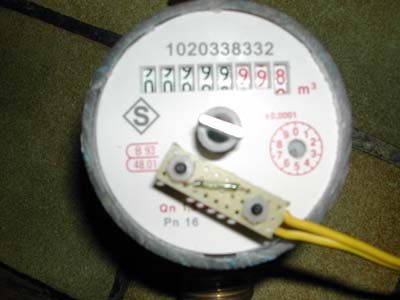 La photo: à gauche un vieux compteur eau froide équipée sur son axe 1/5ème de litre d'un aimant, il fonctionnait mais ne veux plus, dommage
